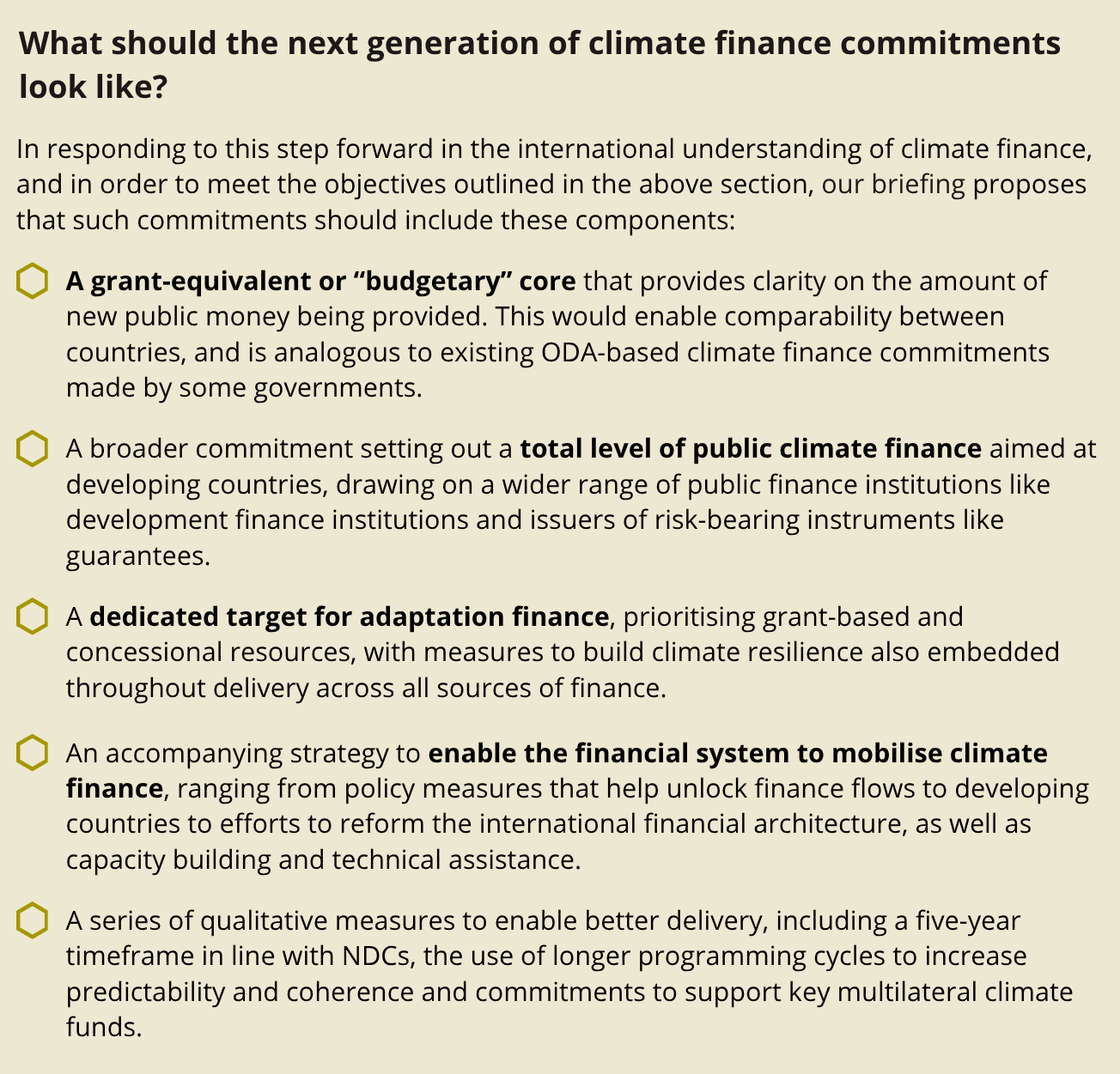 At their core, climate finance commitments should be designed to accomplish three goals: