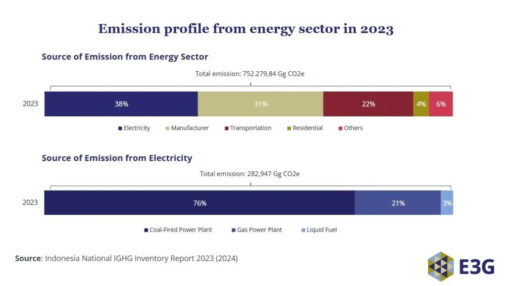 The electricity sector accounted for 38% of energy-sector emissions in 2023, and coal plants made up 76% of those emissions (Picture 1). Coal therefore sits at the centre of Indonesia’s decarbonisation challenge. Achieving a clean, resilient power system will require two clear signals from the implementation of NDC 3.0: reaffirming no-new-coal commitments and accelerating renewable energy deployment.