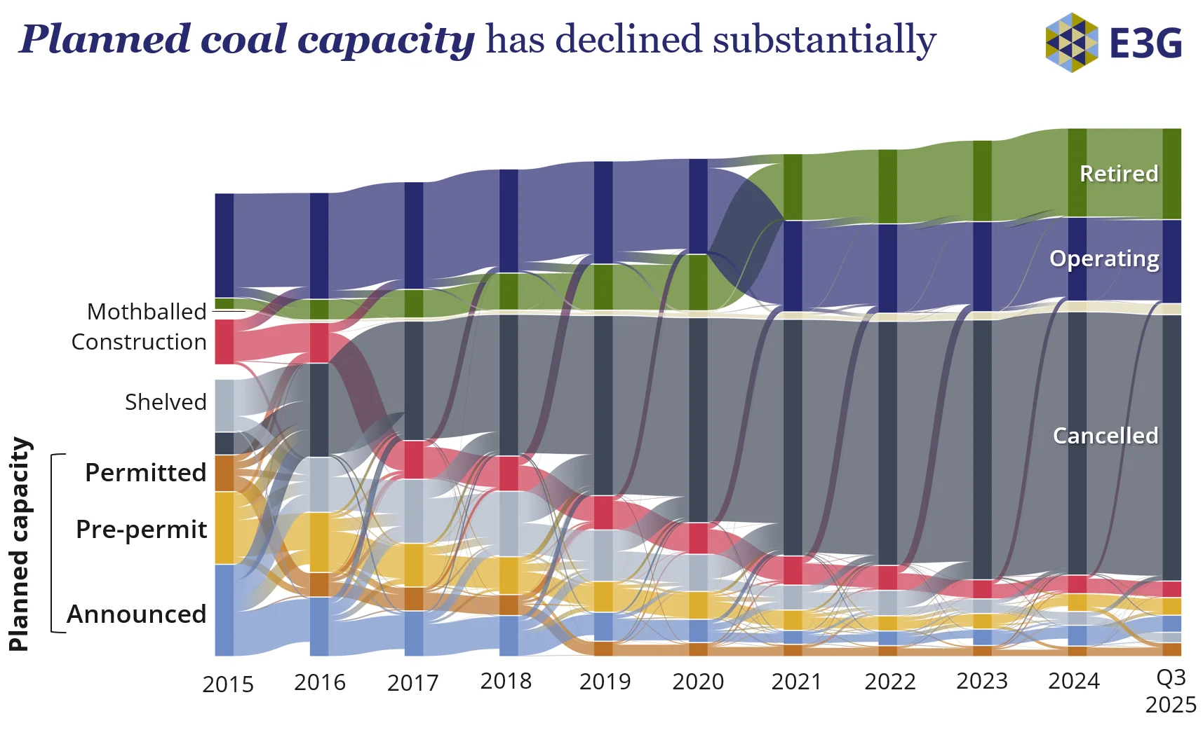 In the decade since the Paris Agreement was signed, the pipeline of planned coal capacity has collapsed worldwide. No New Coal has become the norm across the world: 164 countries have no prospective coal capacity, and stalled and cancelled coal proposals have led to a record low in the number of countries proposing or building new coal plants. However, a small group of countries continue to keep new coal on the table and threaten progress.