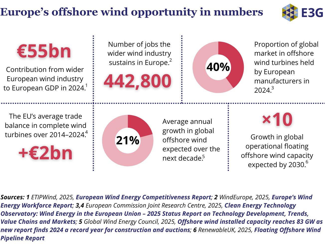 The global offshore wind market is forecast to grow by 21% annually over the next decade. This presents a significant opportunity for the European economy given Europe’s technological leadership in offshore wind.