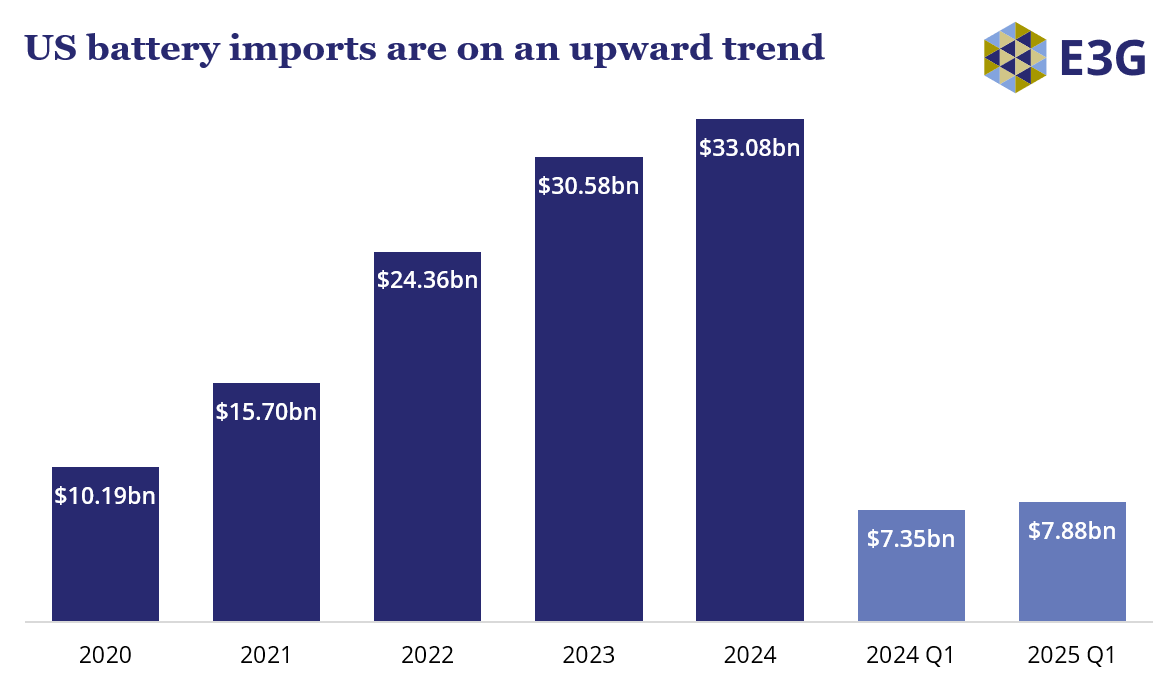 - Battery imports increased from just under $15bn in 2021 to over $33bn in 2024, on a trend that preceded the introduction of the IRA.